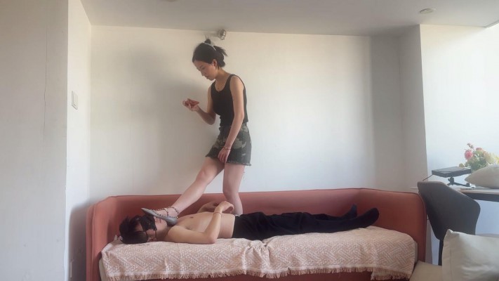 情侣奴被高贵辣妹当清理鞋底汗脚工具使用